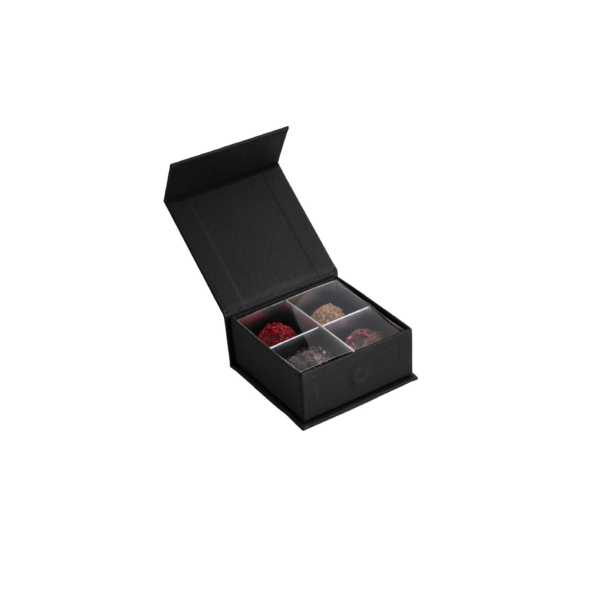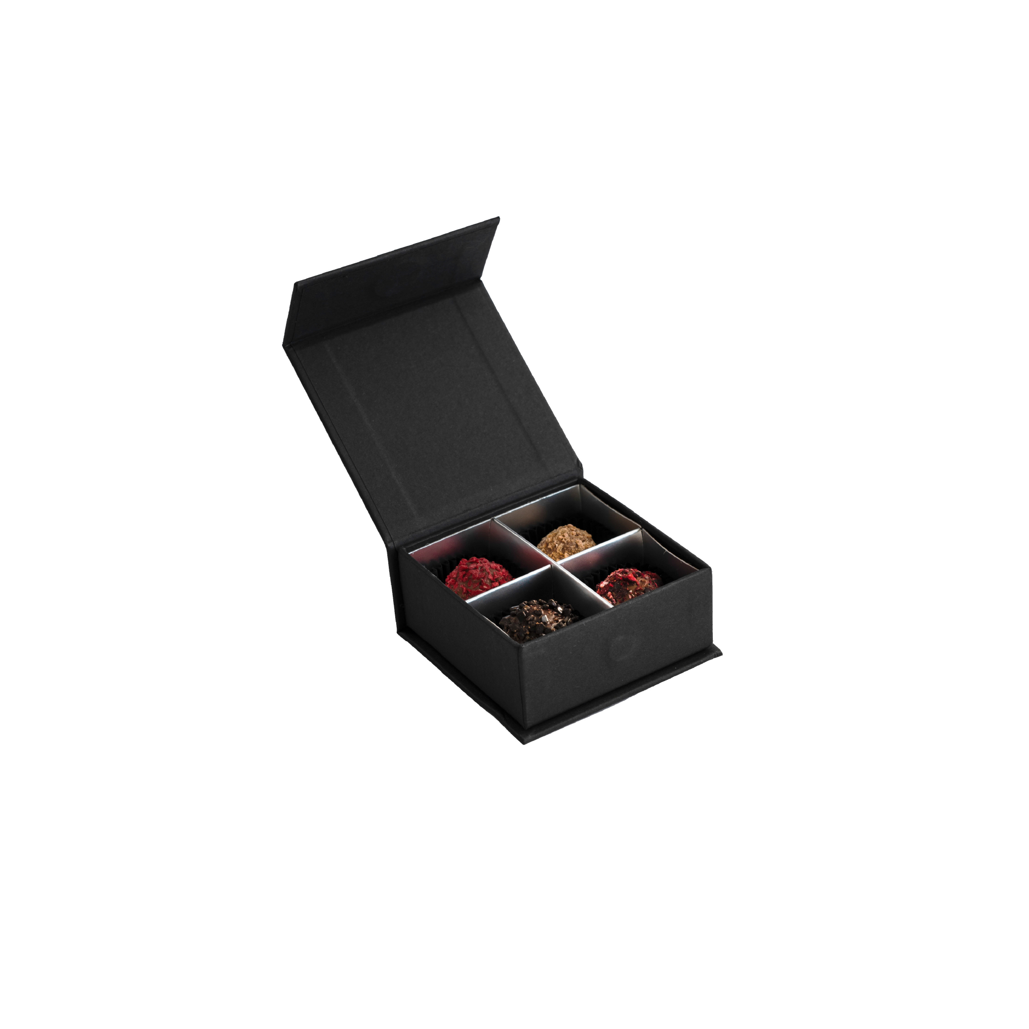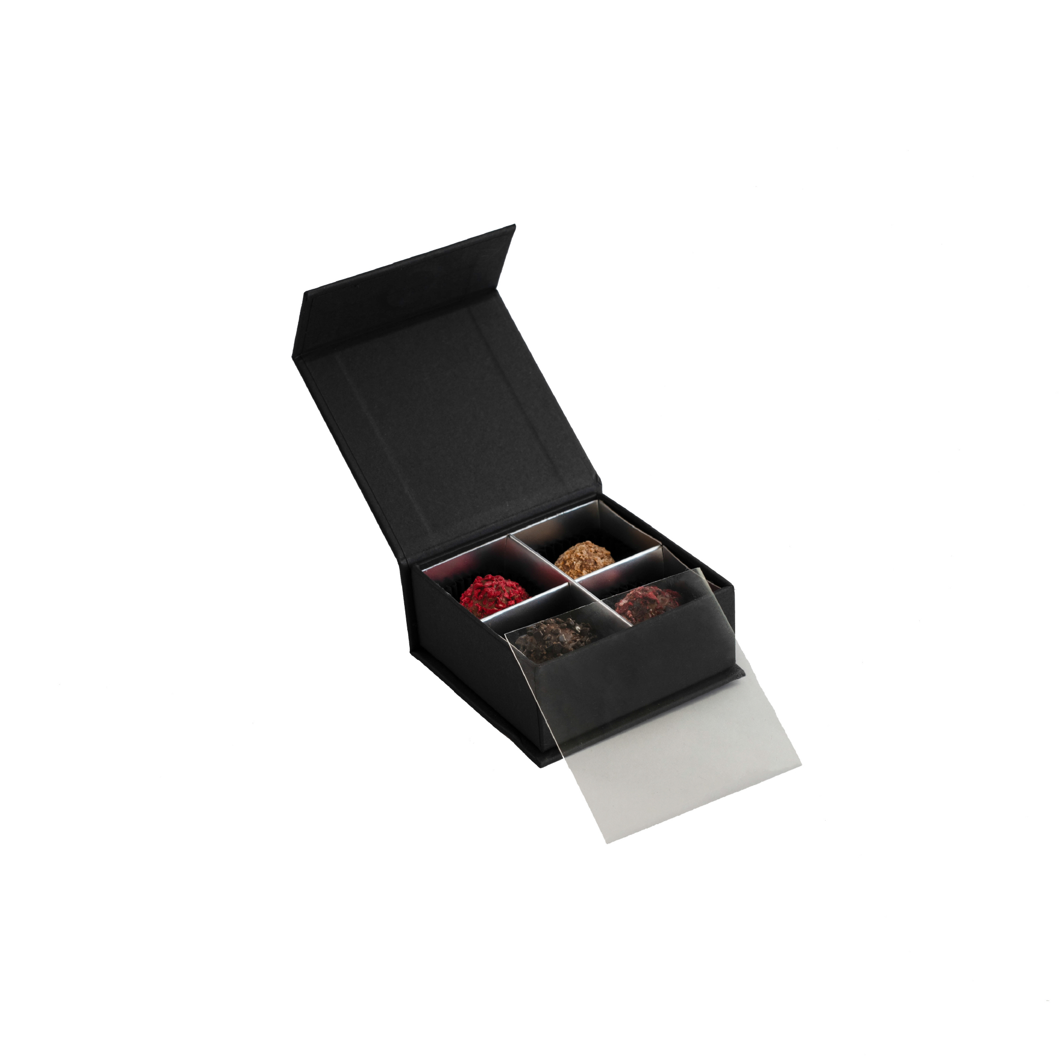 Personaliseeritud magnetkarbis piima- ja tumeda sokolaadiga erimaitselised käsitöötrühvlid.