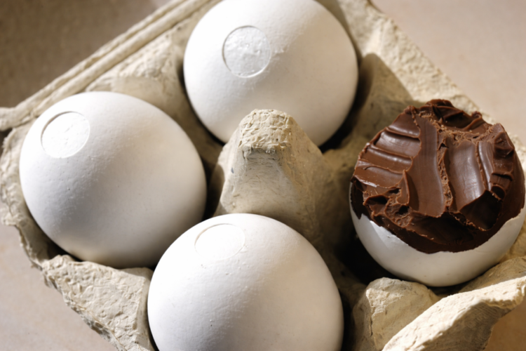 Personaliseeritud pühademunad (4 tk) – päris munakoorega šokolaadimunad, täidetud maitsva mandli-pähkli-nugatitäidisega.